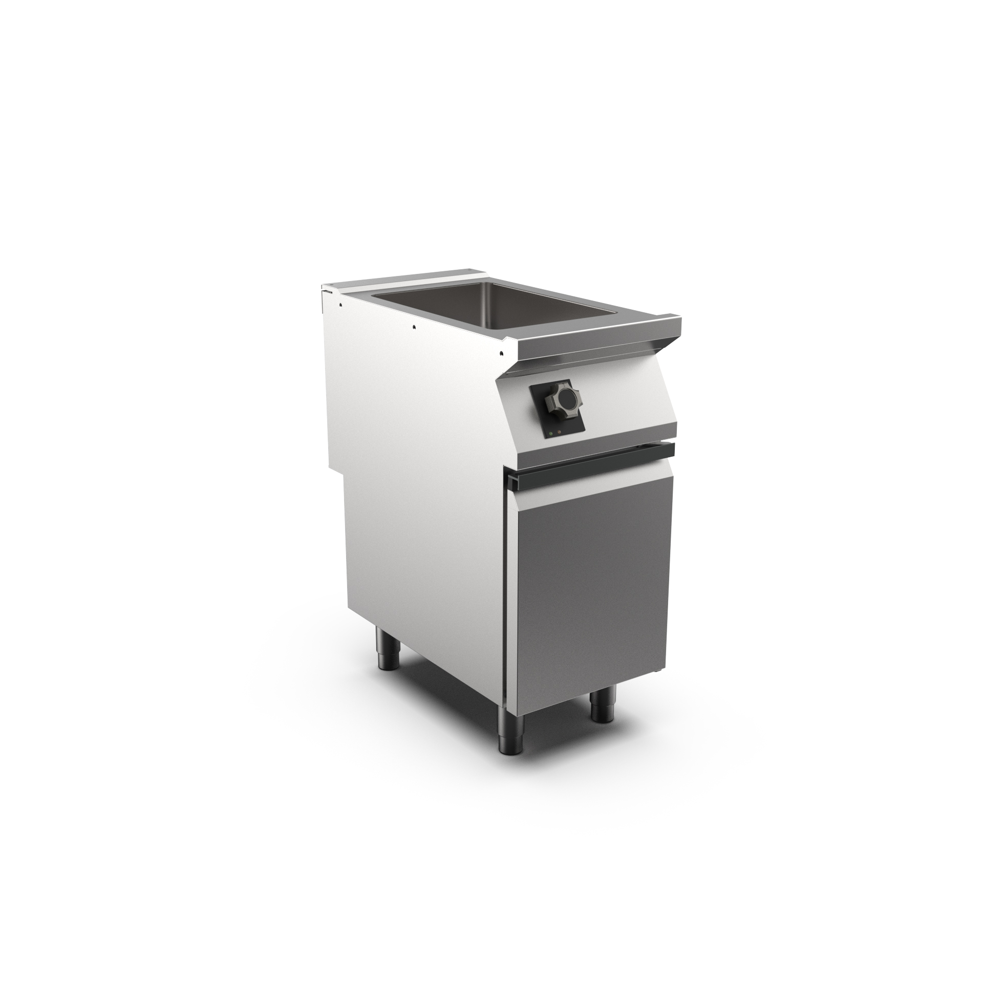 Echipamentul este construit din oțel inoxidabil AISI 304 și are o cuva dreptunghiulară din inox cu fund lustruit, care permite o distribuție uniformă a căldurii.